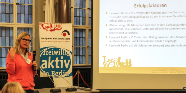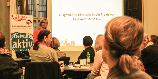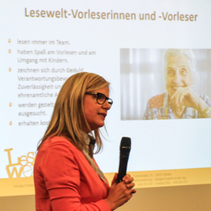 Im Anschluss stellte Ursula Frommholz, Vorstand des Lesewelt Berlin e.V. „Ausgewählte Einblicke in die Praxis von Lesewelt Berlin e.V.“ vor.